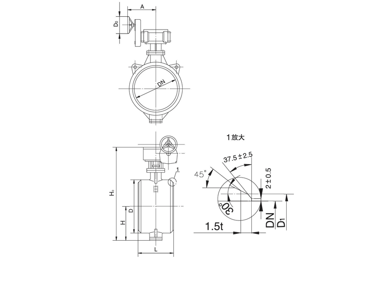 產(chǎn)品名稱及型號:對焊式金屬密封蝶閥 D36(3/2)(H/W/W)