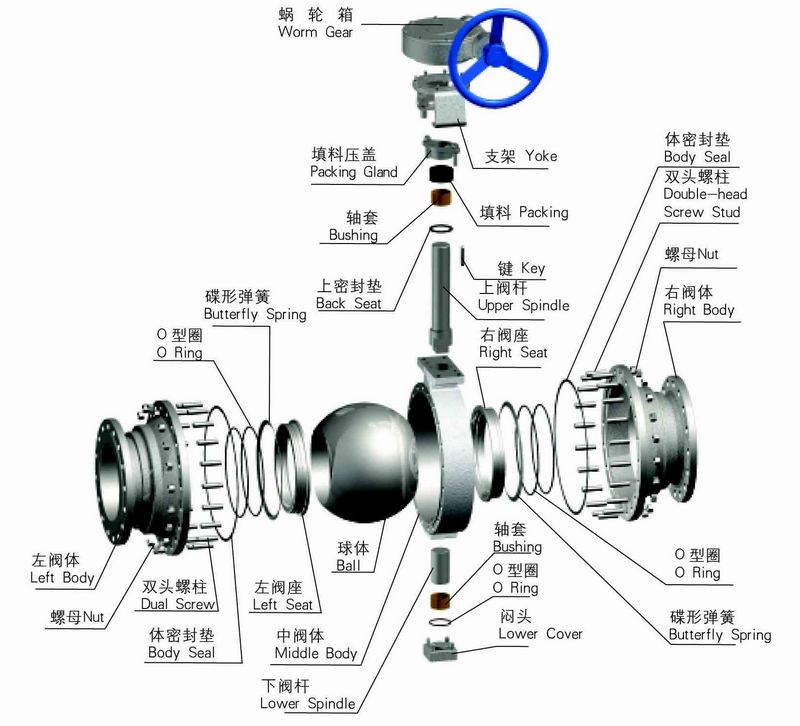 • 產(chǎn)品介紹:    Q347固定蝸輪球閥兩分式和三段式固定球閥又稱側裝分體式球閥,將閥體沿與閥門通道軸線相垂直的截面分為不對稱的左右兩半,它在管道上主要用于切斷、分配和改變介質流動方面。它的樞軸結構保證了了準確的球體位置。標準閥座采用彈簧結構,將閥座推向球體,保證了良好的低壓密封性能。該球閥閥前,閥后閥座都能密封,即所謂雙向密封特性,利用自帶的排放閥,閥體中腔可向外排放。樞軸采用防吹出保護結構,低摩擦系數(shù)的軸承等。